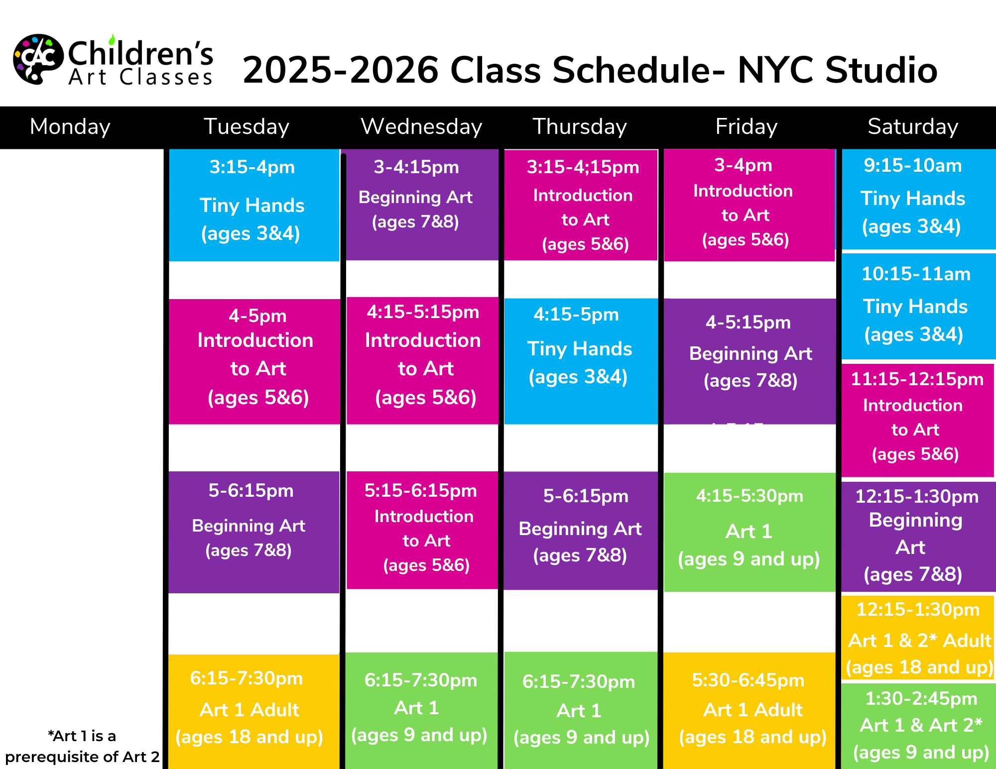 If you’re looking for art classes in summer or year-round, we offer one of the largest selections of children’s art courses, painting lessons, and art lessons in New York City. Our art programs encourage children to explore over 40 different types of visual arts through art painting classes, drawing summer classes, and painting summer classes, tailored for all skill levels and ages.